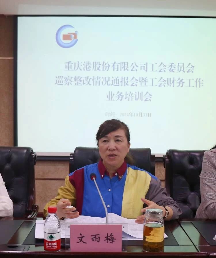 文雨梅针对下一步工作提出三点要求,一是夯实主体责任,持续巩固巡察整改成果。要提高政治站位,始终绷紧“巡察整改”这根弦,把各项工作与落实巡察整改任务紧密结合,一体谋划、一体部署、一体落实,以巡察整改促进工会工作高质量发展;要切实增强依法依规管理经费的意识和责任感,使工会经费更好的用于服务职工、服务工会发展。要防止问题反弹,针对已完成的任务,要认真开展回头检视,举一反三、以点带面、查漏补缺,确保真改、实改、改到位,不留“尾巴”;要建立长效机制,坚持把“当下改”与“长久立”、“点上改”与“根上清”相结合,对各项规章制度进行全面梳理和完善,确保制度的有效性和可操作性。要强化监督检查,不断加强经审组织建设,配齐配强经审人员,规范经审行为,夯实经审责任,切实发挥“把关人”“守门员”作用;要坚持问题导向,加强对制度执行情况的监督检查,及时审查纠正违反制度的行为,确保制度的严肃性和权威性。二是加强自身建设,持续提高工会履职能力。要夯实基层基础,坚持以“党建带工建,工建促党建”为引领,不断完善工会组织架构、规范履行组织程序,着力抓好职工小家、职工书屋等阵地建设,不断增强工会组织的引领力、组织力、服务力。要加强理论学习,始终坚持以习近平新时代中国特色社会主义思想为指导,大力弘扬“三种精神”,画好工会最大“同心圆”,带领广大职工群众听党话、跟党走。要提升专业能力,进一步加强对工会工作制度的宣传学习,组织开展务实管用的业务培训,不断提升工会工作者的工作能力和水平。三是强化服务意识,持续创新工会工作方式。要树牢服务理念,坚持以职工为中心的工作导向,深入了解职工的需求和期望,及时掌握职工思想动态,积极回应职工关切,根据职工群众需要,提供内容对路、形式有效的具有工会特点的普惠性、常态性、多样性服务,做职工的“贴心人”。要提升服务效能,着力在发挥功能上提质提效,坚持把职代会作为民主管理的基本形式落到实处,完善工资集体协商和集体劳动合同制度,推进女职工权益保护专项集体合同工作。严格按照上市公司信息披露要求,抓实厂务公开工作,充分保障广大职工的民主权利。要坚持服务大局,聚焦企业高质量发展需要,围绕成渝地区双城经济圈建设、西部陆海新通道建设、长江经济带绿色发展等重大战略,组织开展具有重庆港特色和辨识度的劳动和技能竞赛,进一步建强建优职工队伍,有力激发广大职工的工作积极性和创造性,助力企业生产经营任务圆满完成。