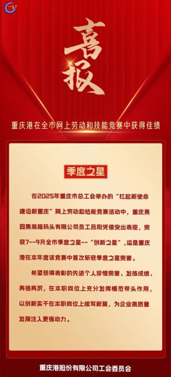 喜报!重庆港在全市9月网上劳动和技能竞赛中获得佳绩
