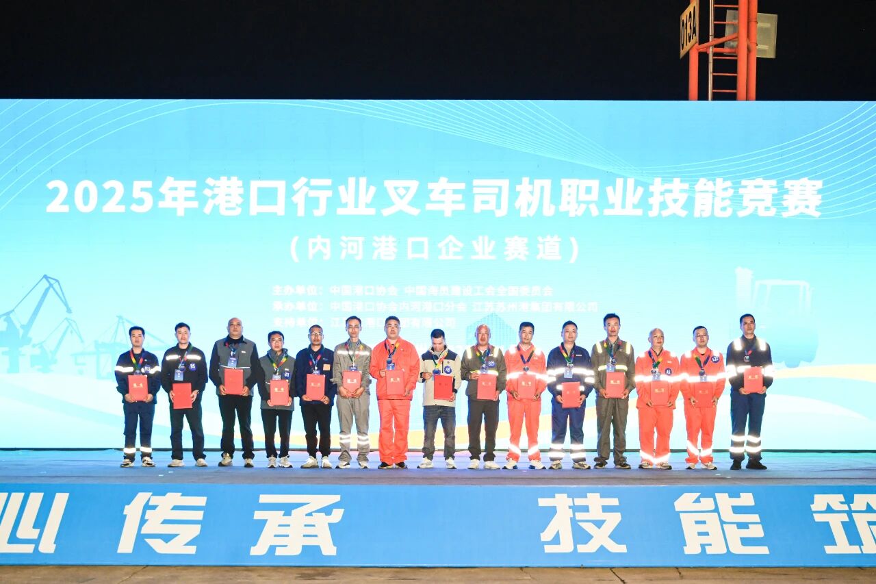 2025年11月5—6日,在江苏省苏州张家港举办的2025年港口行业叉车司机职业技能竞赛(内河港口企业赛道)中,代表重庆港参赛的果园集装箱公司选手张元国、汤世文均获得三等奖,重庆港获得“优秀组织奖”。图为参赛...2025-11-07