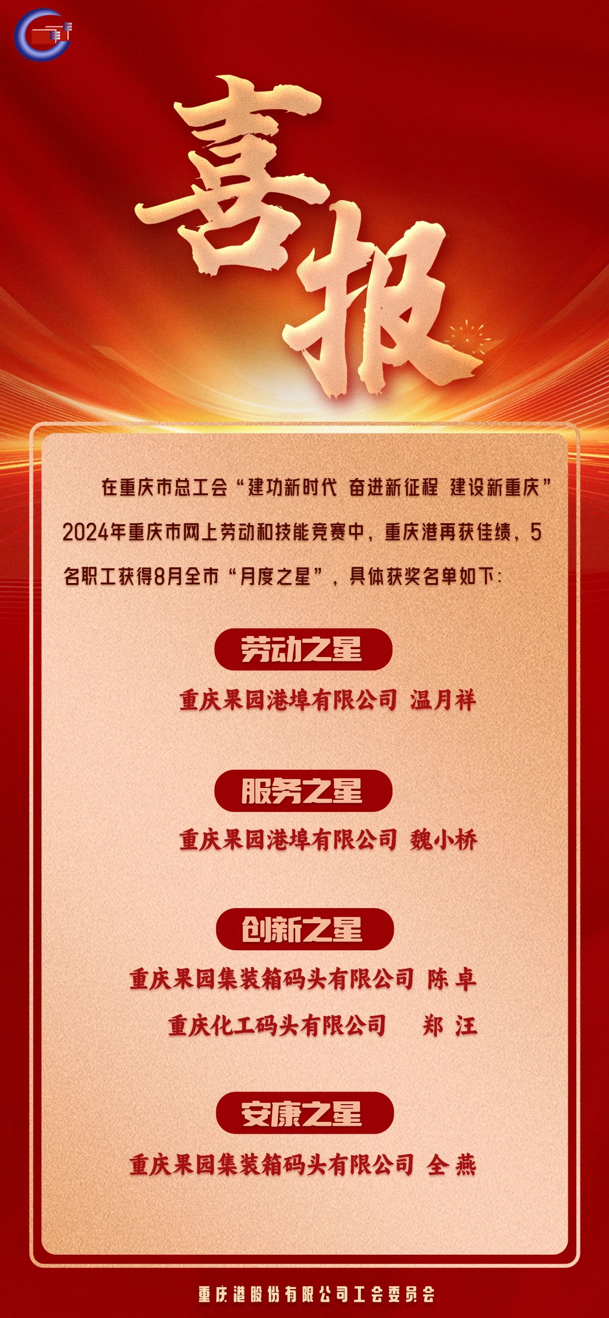 喜报!重庆港在全市8月网上劳动和技能竞赛中再获佳绩